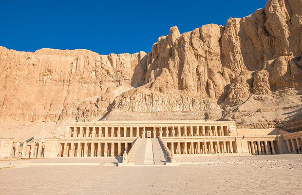 Templo mortuário de Hatshepsut em Luxor, construído em homenagem a Amon-Rá, o deus do Sol, perto do Vale dos Reis.