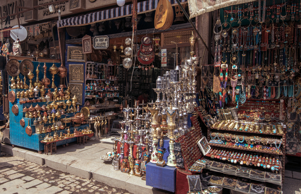 Khan el Khalili, o imenso mercado na cidade do Cairo Antigo.