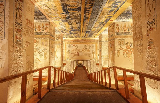 Imagem rara do interior das tumbas do Vale dos Reis, onde estão enterrados alguns dos faraós e governantes mais poderosos do Império Novo.