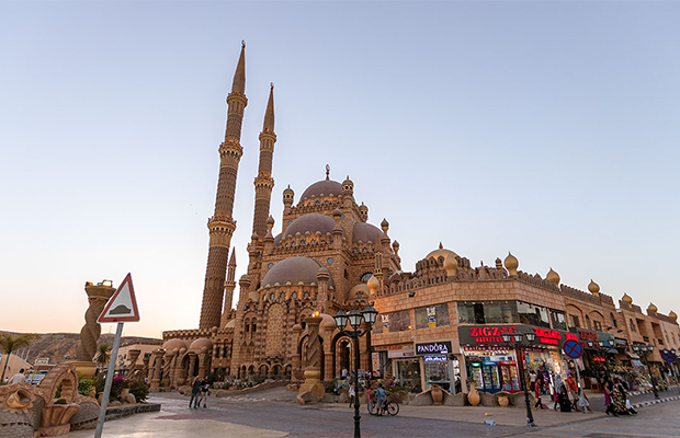 Mesquita Al-Mustafa em Sharm El Sheikh: com uma belíssima fachada de mármore e arquitetura impressionante, o local traz uma enorme sensação de paz e tranquilidade para fazer orações.