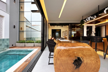 A mim chamou-me a atenção a forma como a casa está “encaixada” na lava; os espaços comuns que parecem escavados na rocha vucânica; e a espetacular zona exterior onde pontifica uma pequena piscina. Tudo deslumbrante e incrivelmente harmonioso.