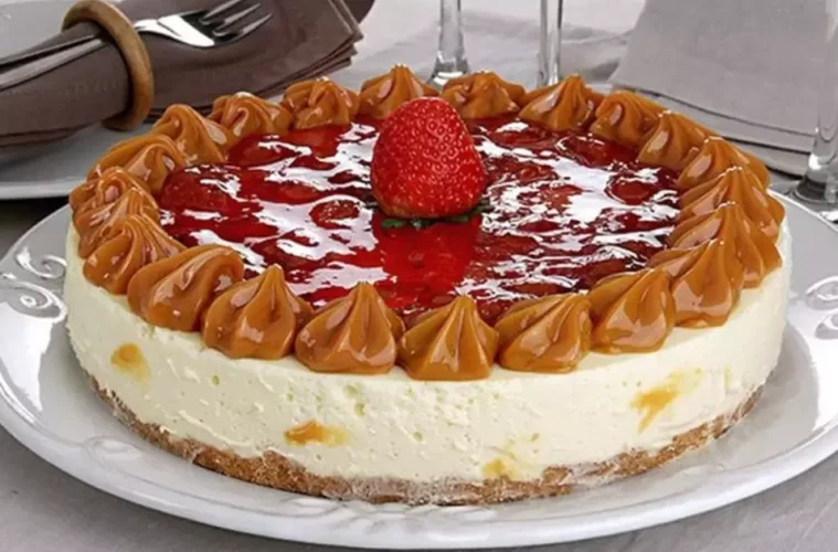 Aprenda uma receita fácil de cheesecake de morango que mistura a fruta com doce de leite